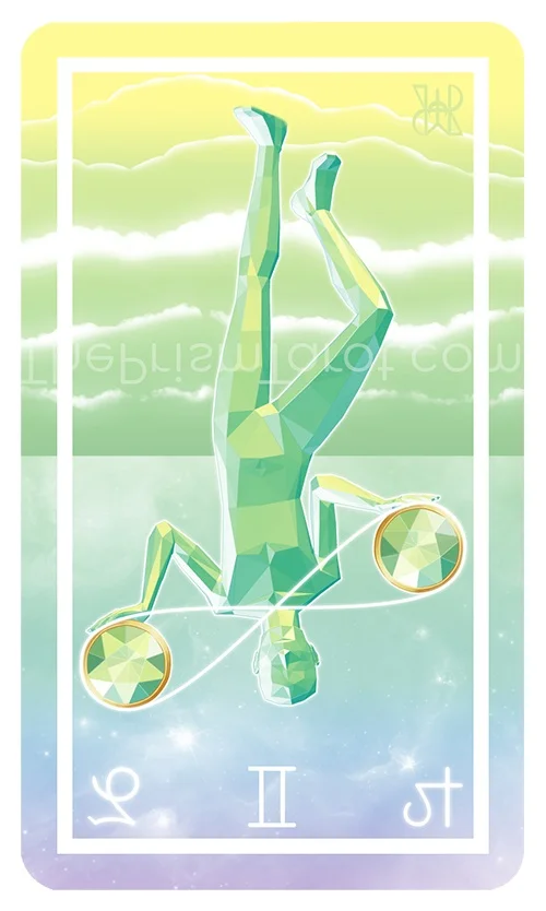 Reversals can be tricky because they are a lot more subtle and personal. The reason many reversals seem like negative counterparts to their upright selves is because they are not fully charged, so to speak. For instance, in the case of the II of Pentacles the upright meaning reveals an ability to find balance in your life, whereas when it’s reversed it points to imbalance. Imagine learning tree pose in yoga. Until you get it just right you may waver and fall, but you’re working towards stability. That is not the opposite, but an in progress state.